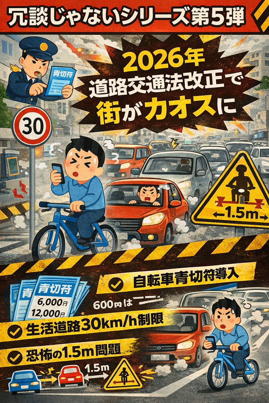 【冗談じゃないシリーズ第5弾】:2026年 道路交通法改正で街がカオスになるかもしれません